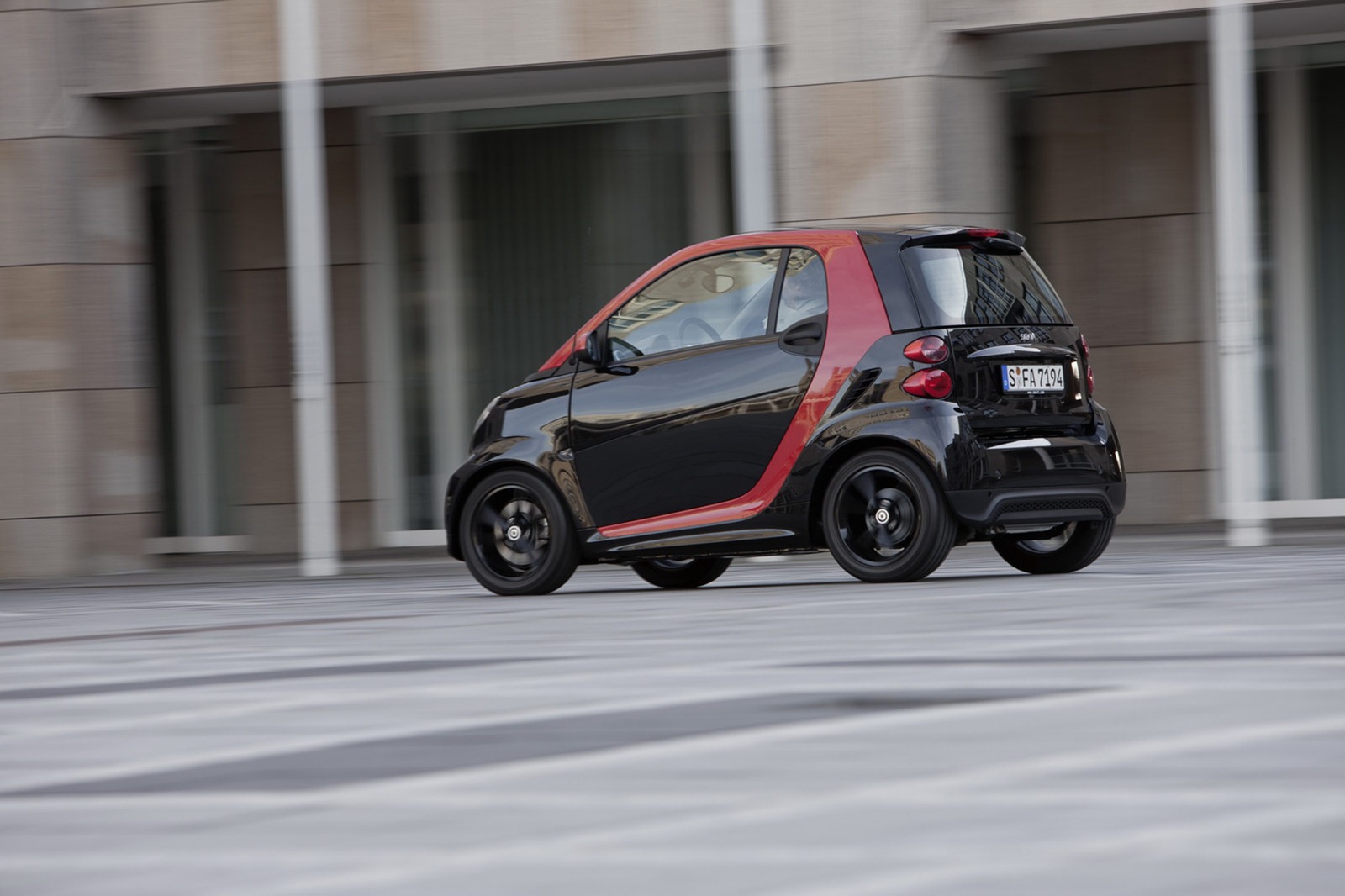 "Sharpred" is the name of the latest special edition model from Smart and will be available this May in a limited run of 1,800 examples as a Coupé and as a Cabrio with either a 70bhp (52kW) mhd petrol engine or an 82bhp (62kW) petrol unit. What separates the Sharpred from its lesser Fortwo siblings is the two-tone color theme with the main body and 15-inch alloy wheels painted in black and the Tridion safety cell and door mirror housings finished in a contrasting red color.